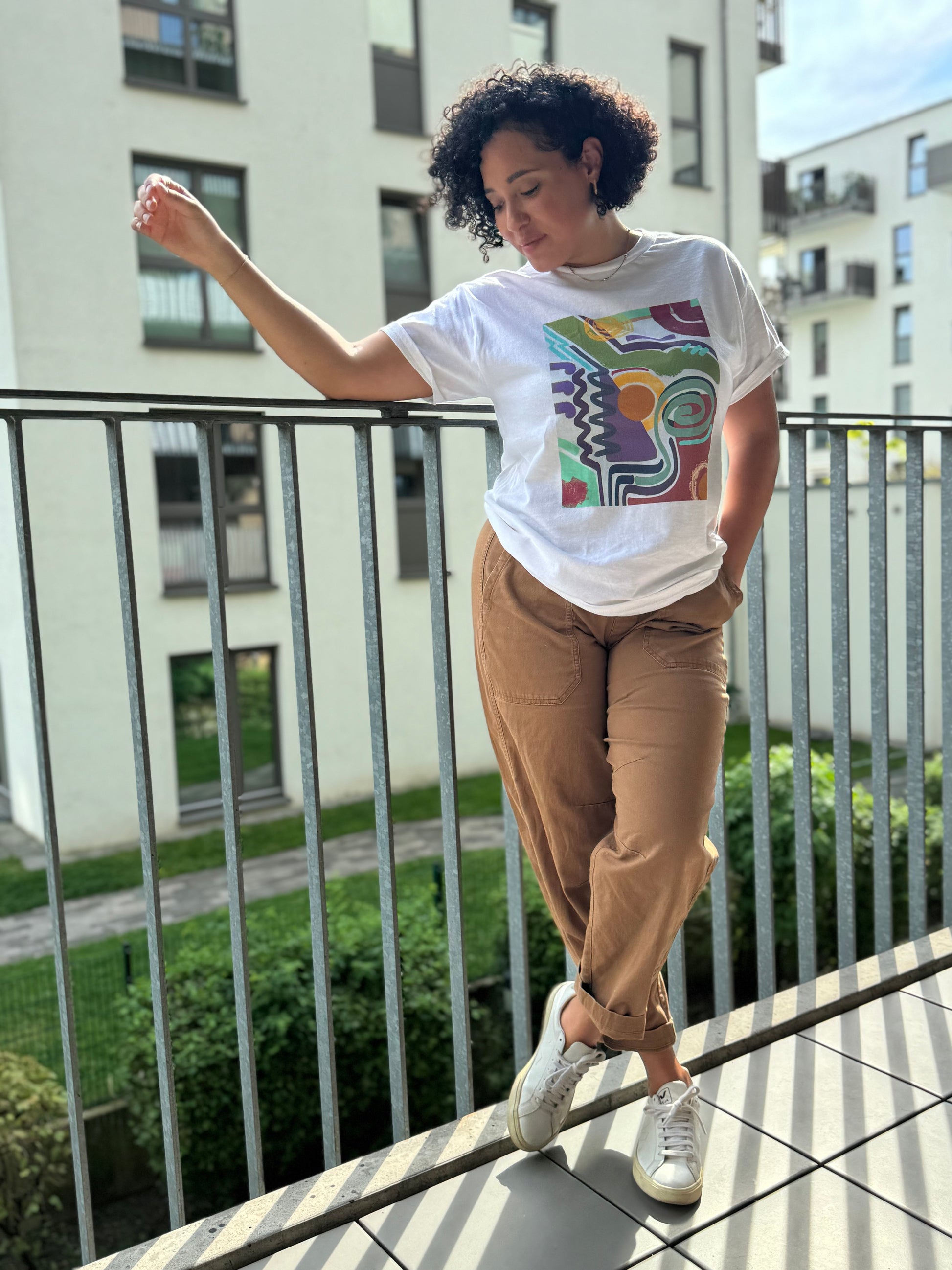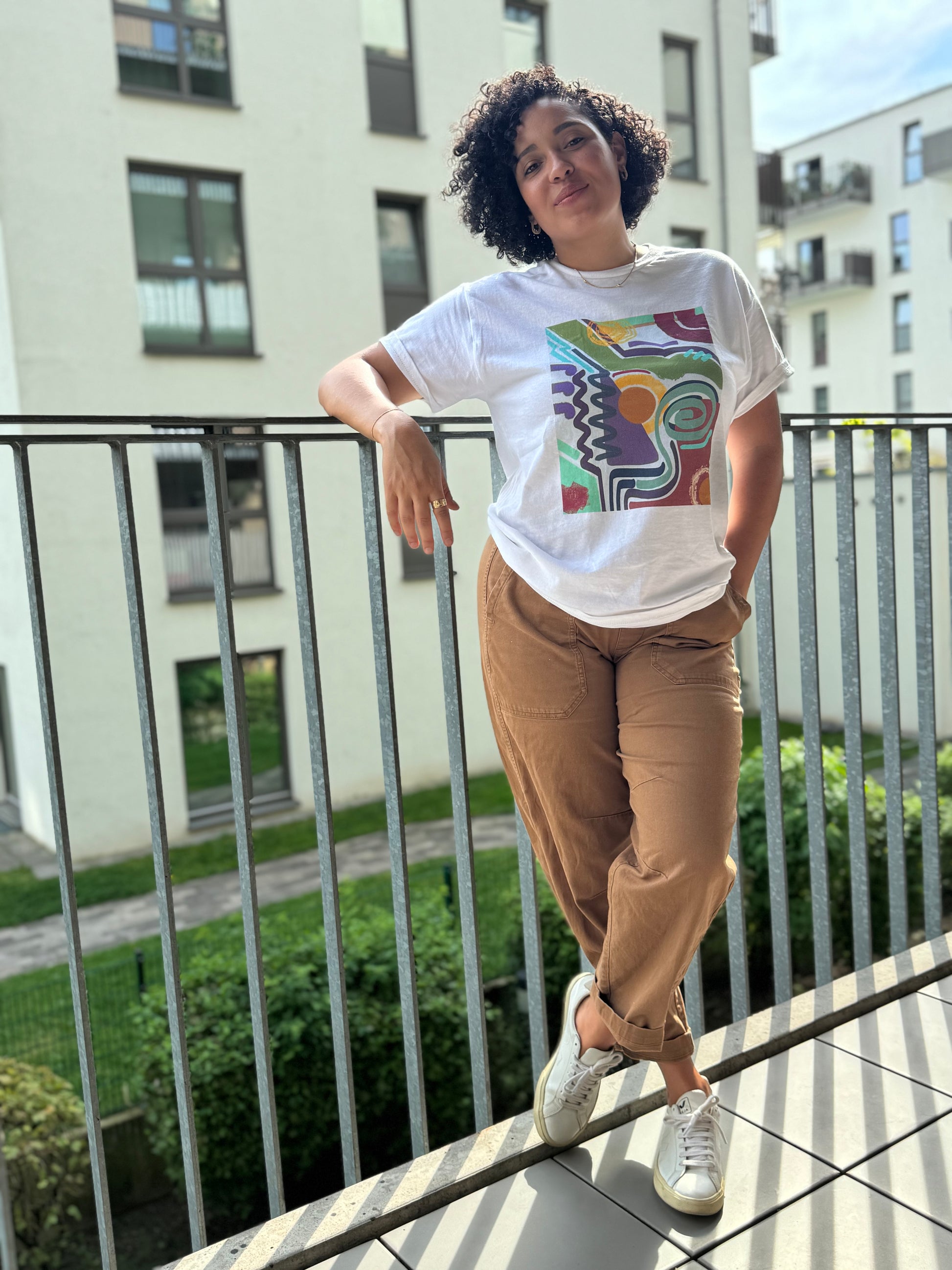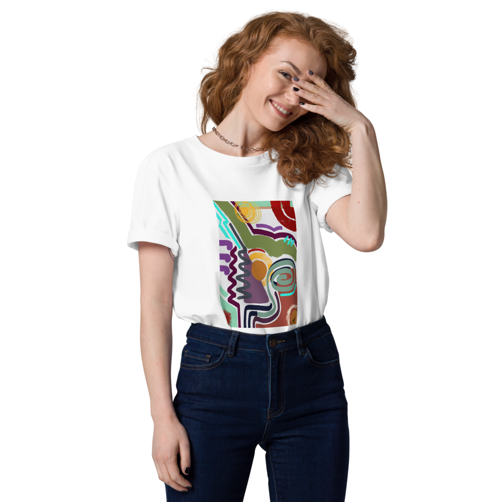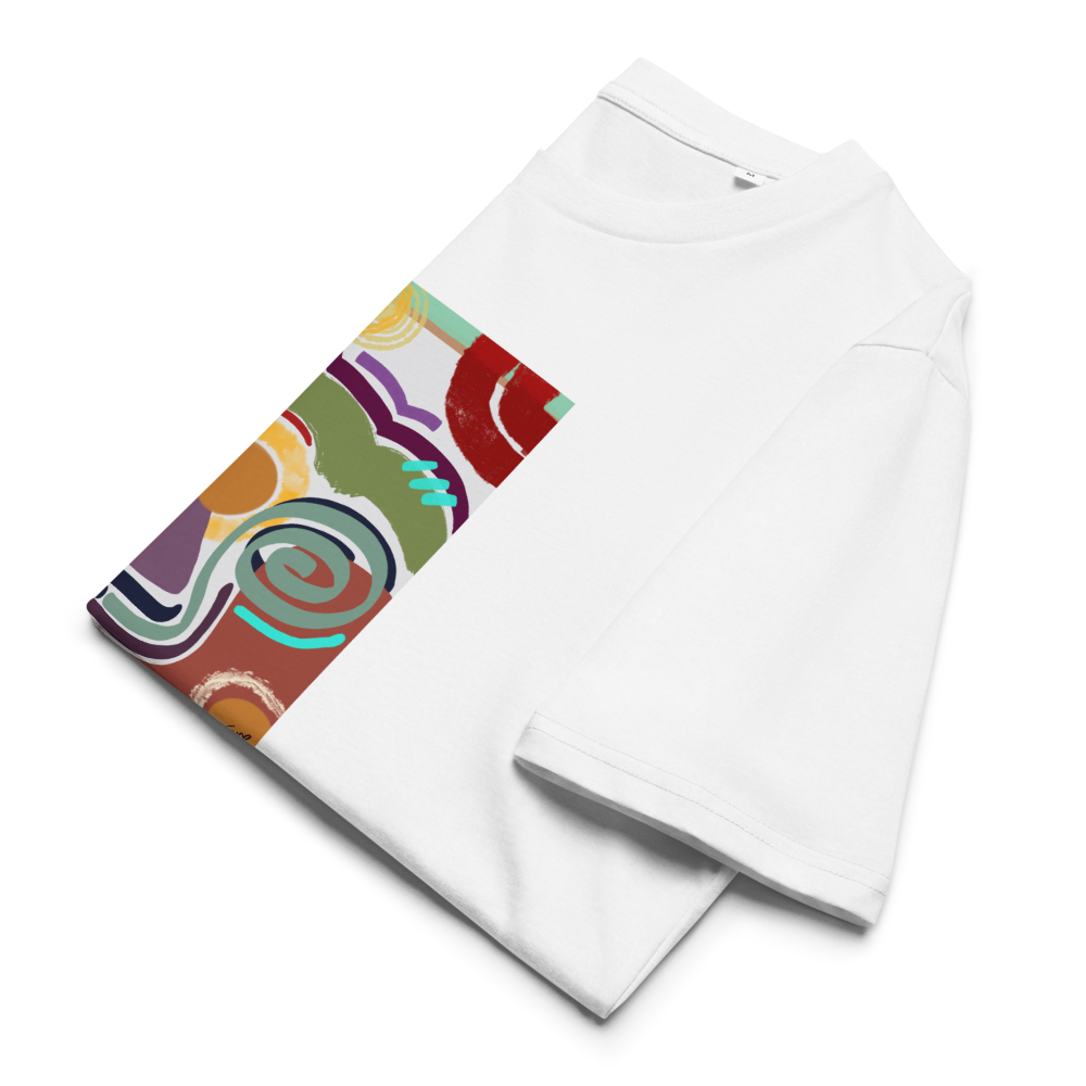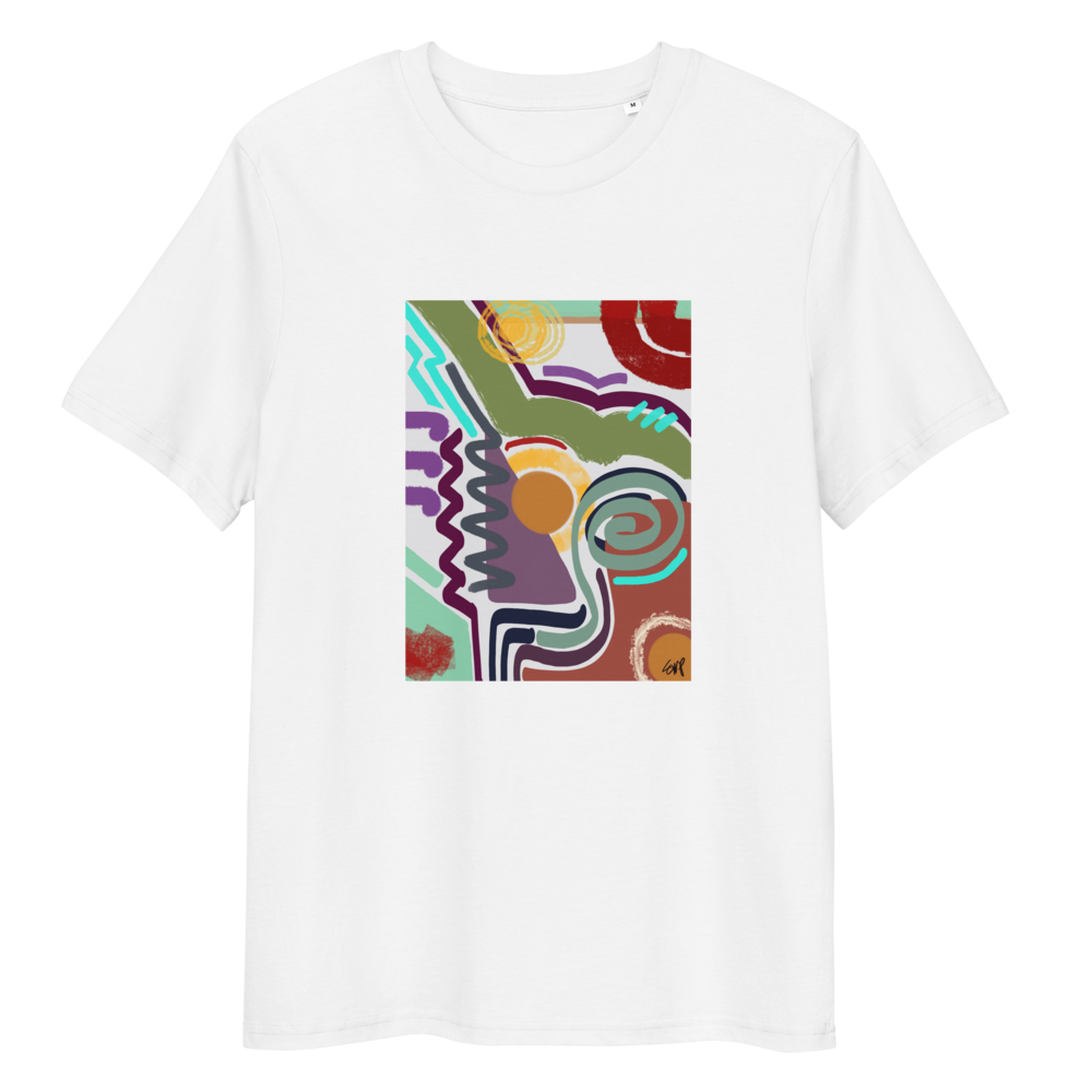 Unisex, 100% organic cotton tee that is eco-friendly AND fly featuring the shops bestselling art piece “Aura | abstract”